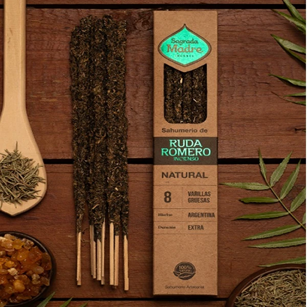 Ruda, Romero y Frankincense combinación de tres fuerzas poderosas de la naturaleza, energizan, protegen, armonizan los ambientes, rejuveneciendo el aura de los espacios y personas, atrayendo energías renovadas de amor, equilibrio emocional y espiritual.